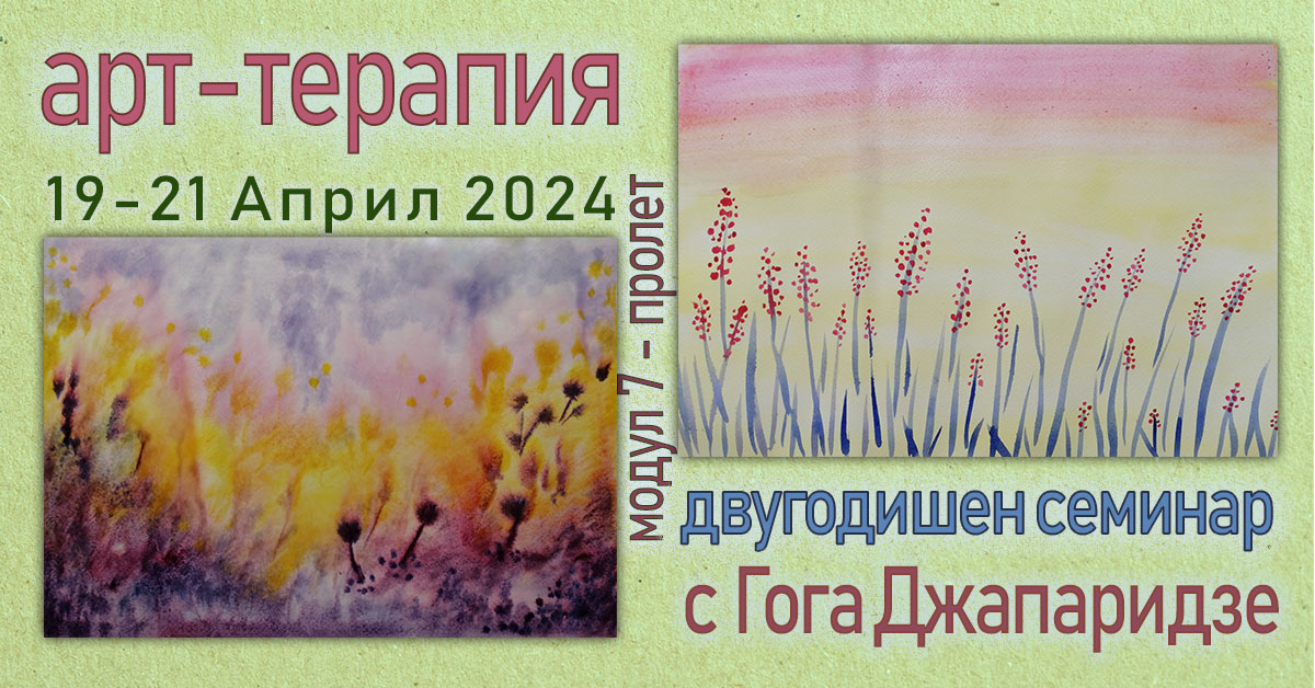 Скъпи приятели, на 19-21 Април 2024г. в София ще се проведе седми модул „Пролет“ от двугодишния семинар по Арт-терапия с Гога Джапаридзе. Гога Джапаридзе е художник и арт-терапевт от Тбилиси (Грузия) с богат опит в терапевтичната работа с деца и възрастни. Завършил колеж по изкуствата, художествена академия, обучение по арт-терапия в психиатричната клиника в Тбилиси, […]